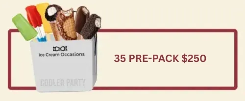 - 35 Prepackaged Ice Creams – $250